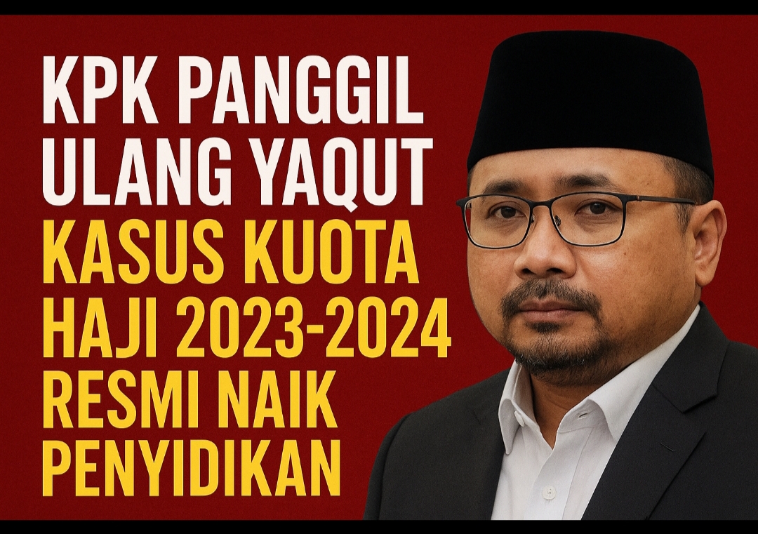 KPK jadwalkan pemanggilan ulang mantan Menag Yaqut terkait dugaan pengaturan kuota haji 2023–2024 yang kini naik ke tahap penyidikan. Simak kronologi dan implikasinya.
